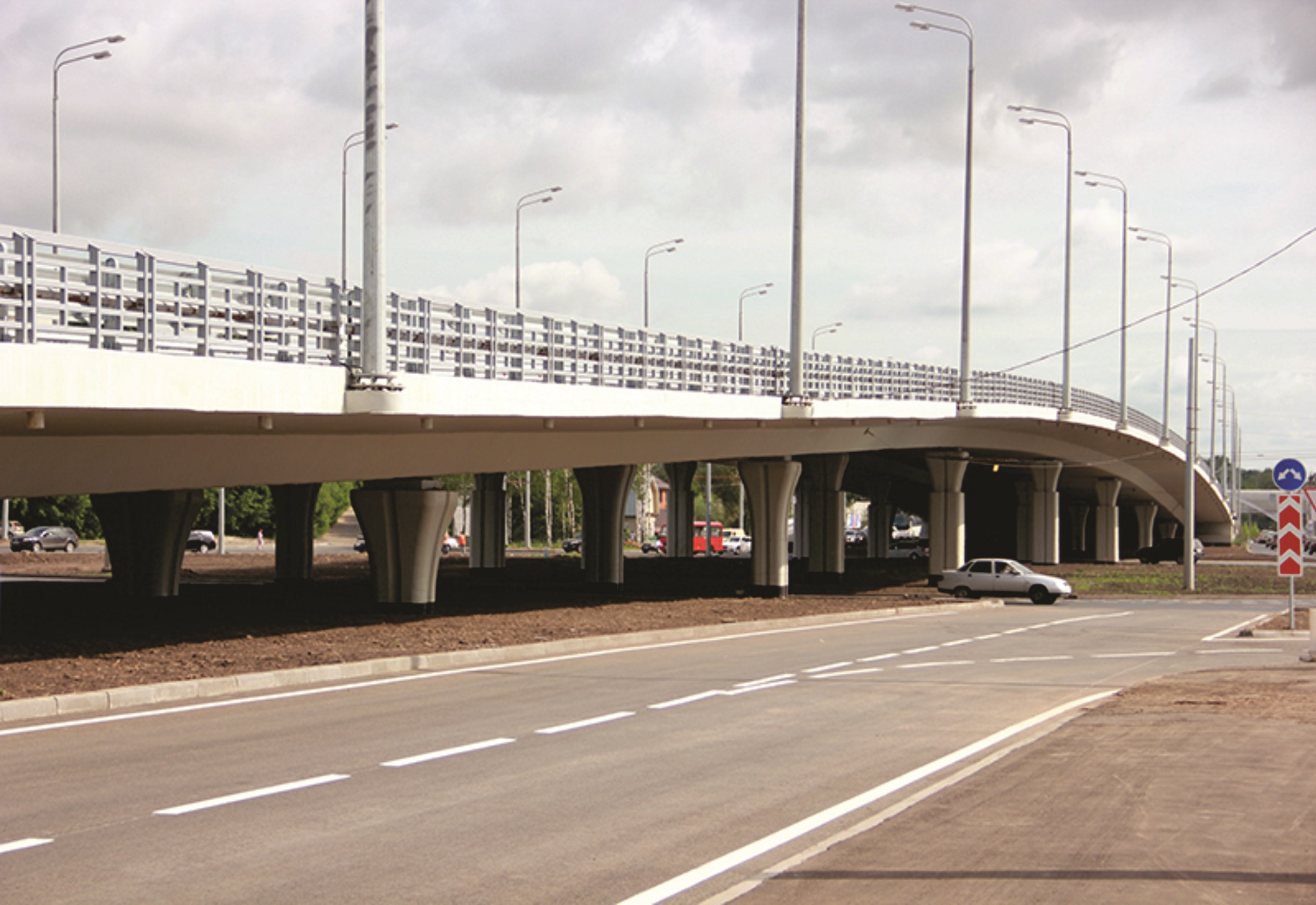 Overpass is designed on the outcome “Tankovoye koltho” and provides free traffic. Overpass is a monolithic reinforced concrete continuous structure.