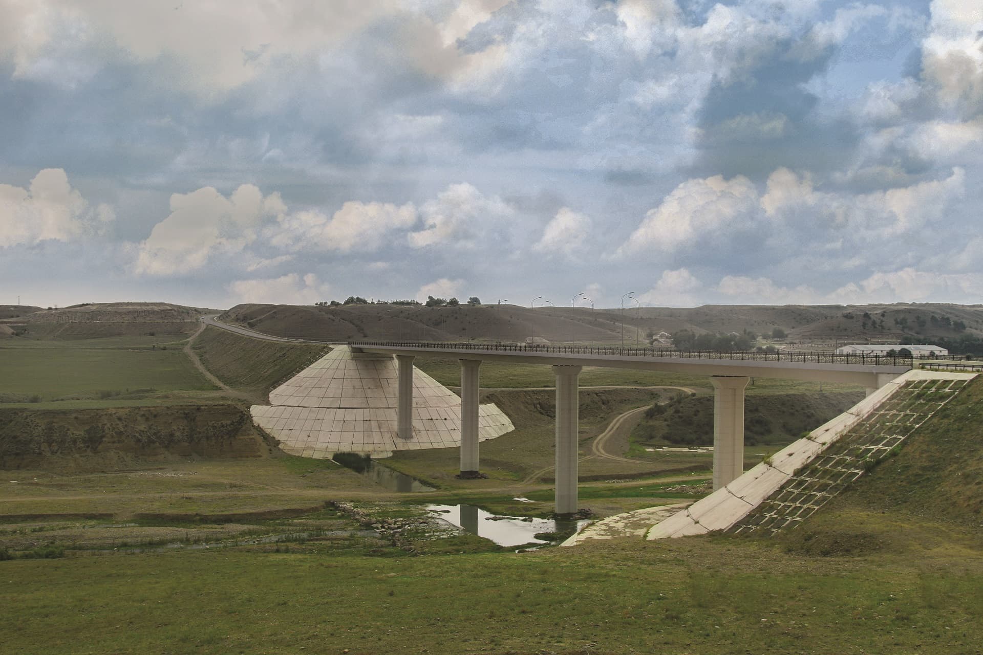 For the first time in Azerbaijan, a bridge with a height of 34.0 m supports was designed using monolithic prestressed reinforced concrete.