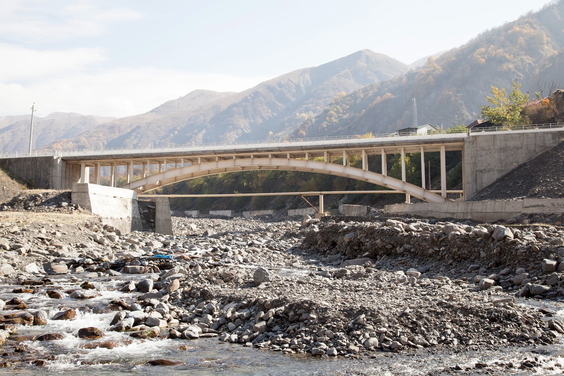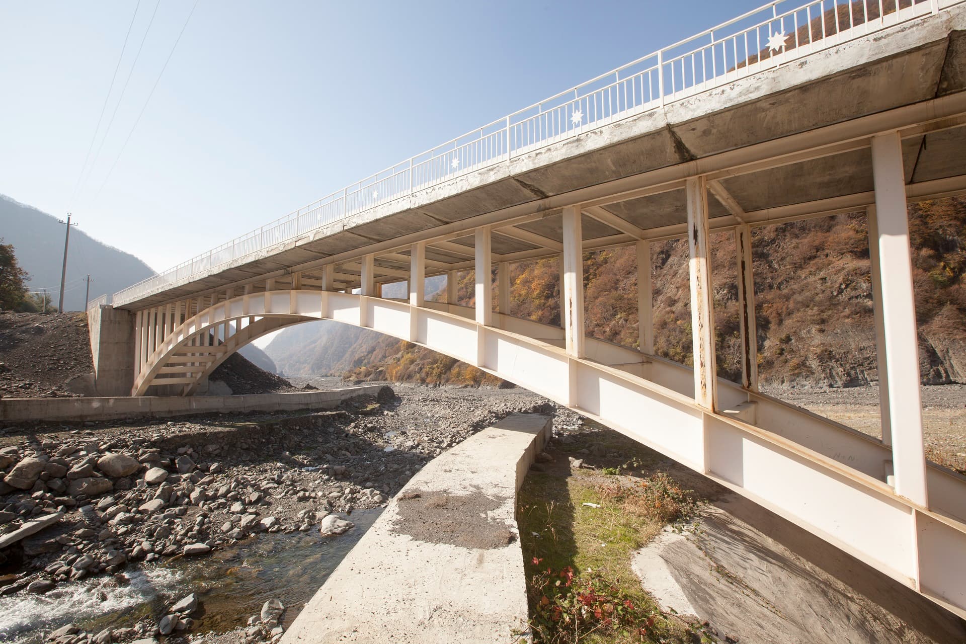 Bridge spans designed in the form of a metal arch with top driving.